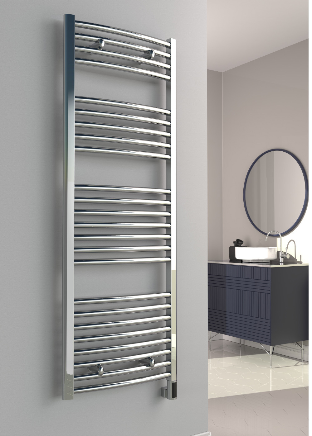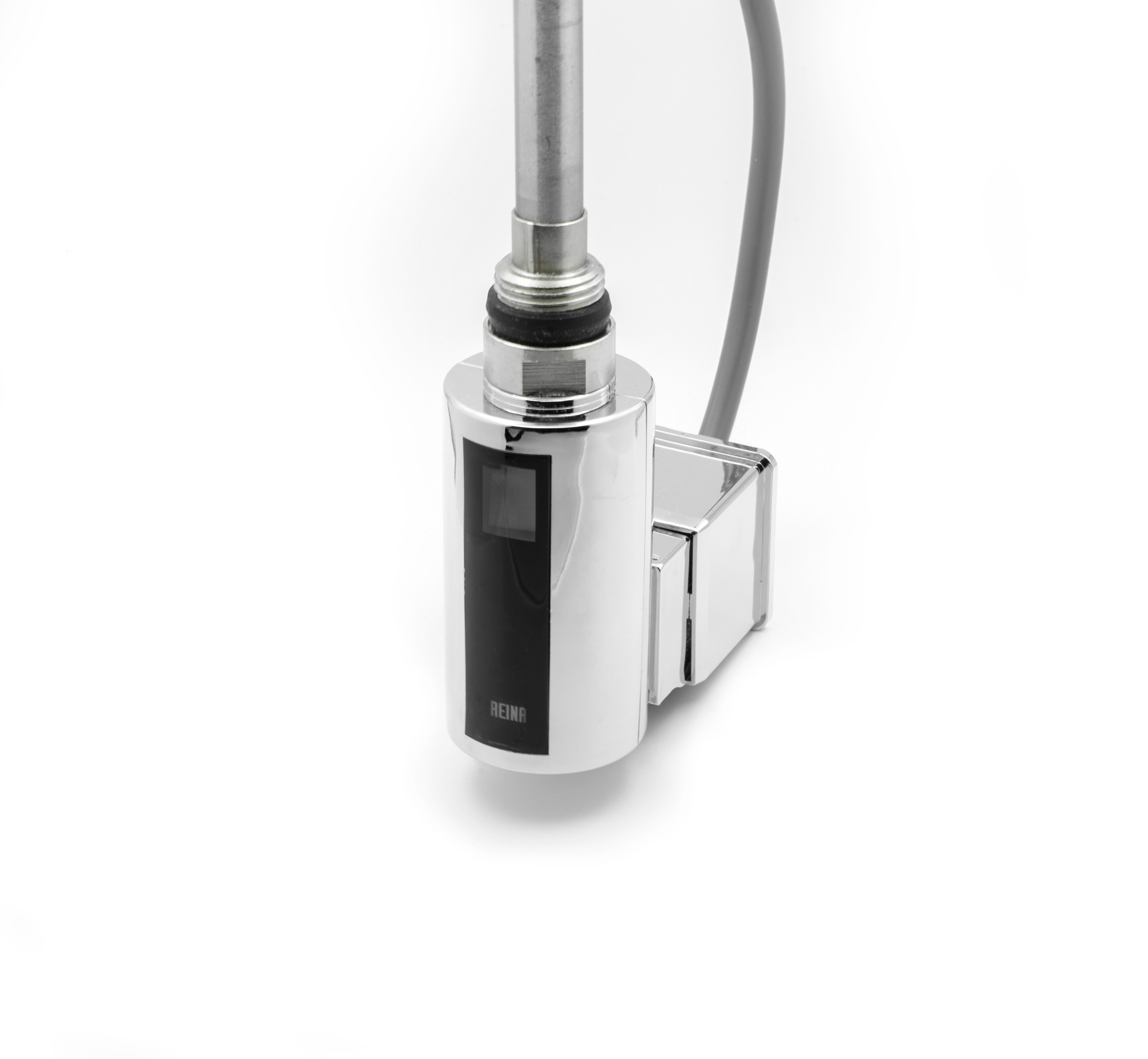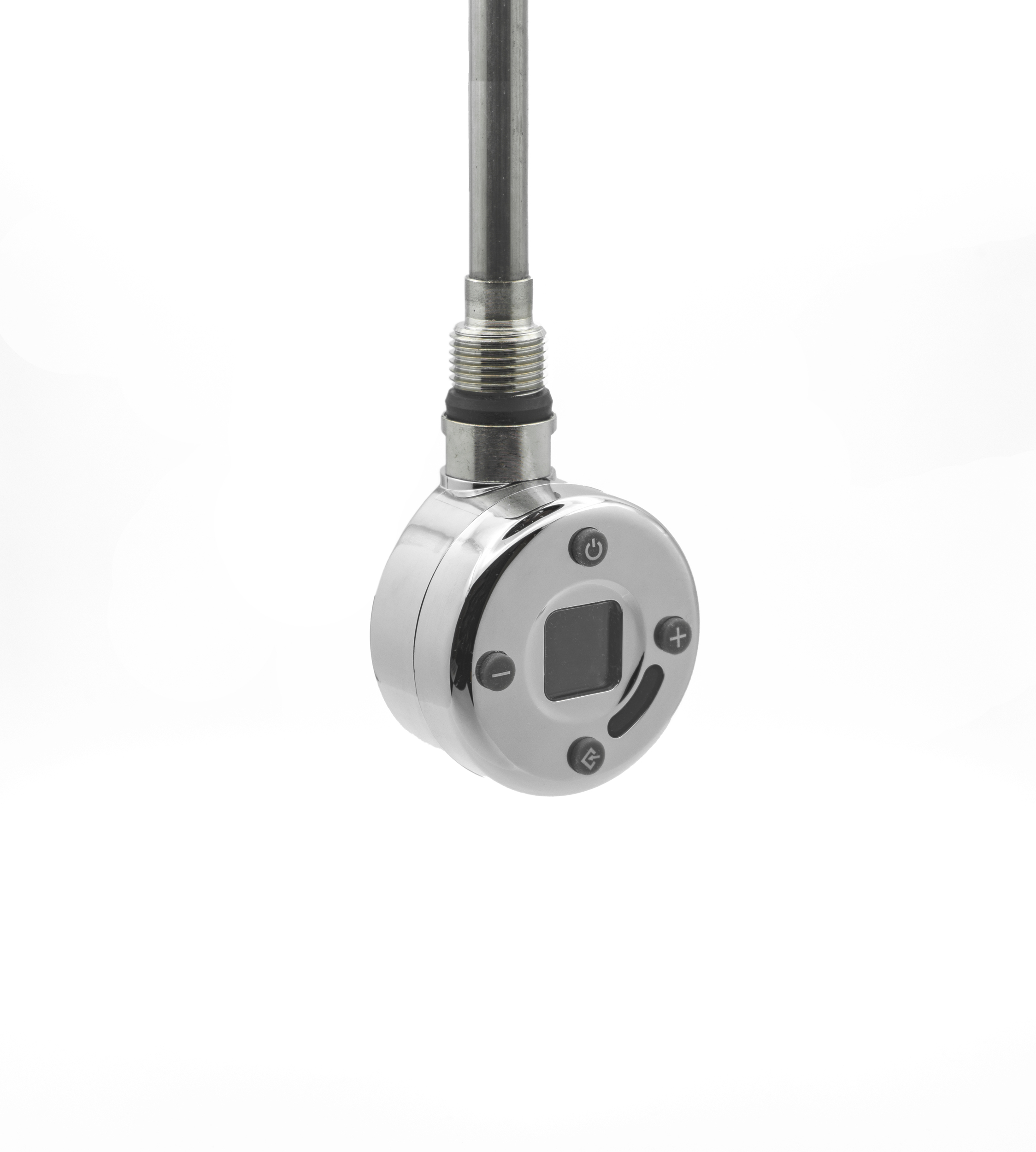 The Reina Diva 1600H x 300W Chrome Fully electric towel rail is ideal for tight spaces, plenty of room for warming towels, the height gives you added output too. Image shown displays the Touch thermostatic element.