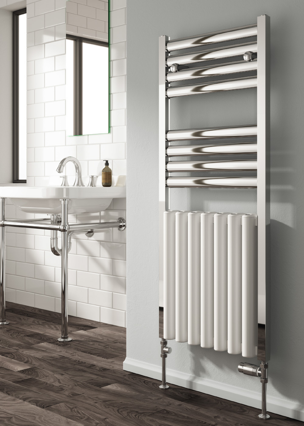The Reina Burton has a lovely mix of styling, with its polished chrome outer frame and white tubular centre, this gives the radiator a great output for its size.