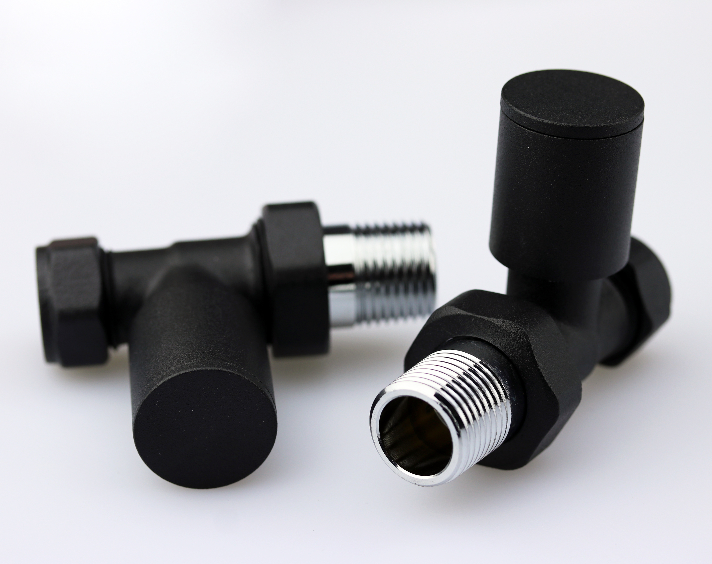 The Ultraheat modern contemporary radiator valve sets come in either straight, or angled in various finishes.